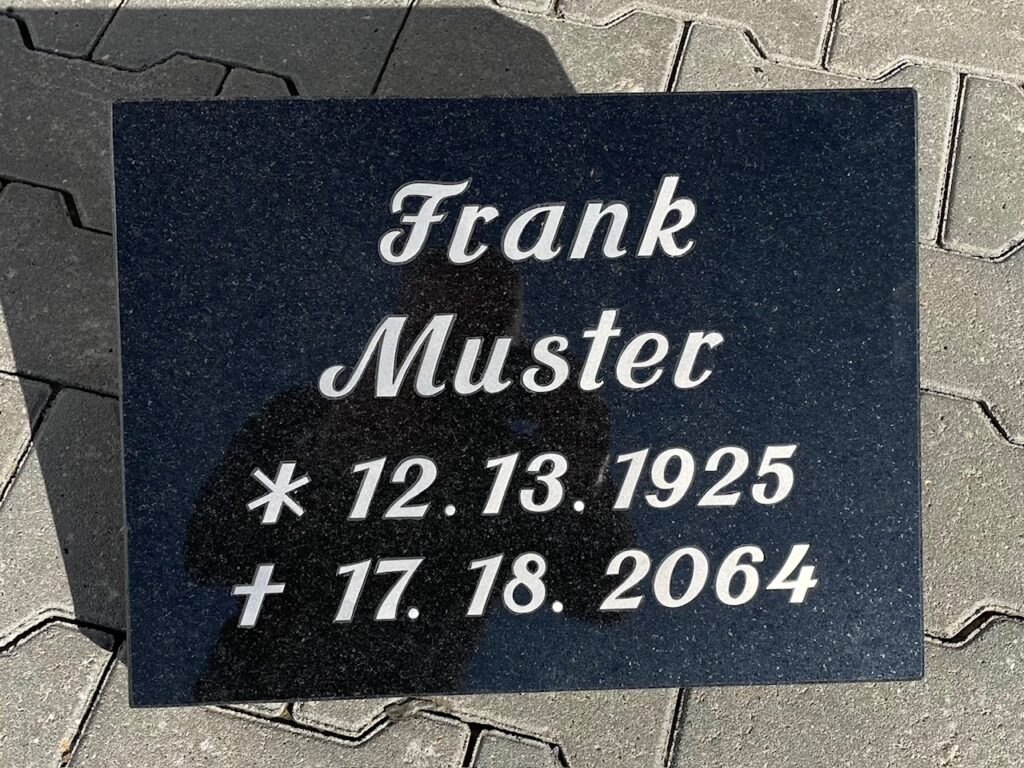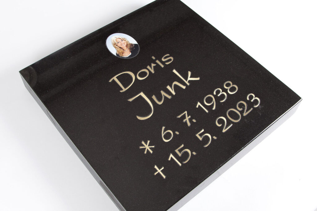 Die Original-Metallintarsien von Plein passen perfekt in die Vertiefung im Stein und wirken besonders elegant. Neben Texten liefern wir über 100 Motive aus unserem Standardsortiment sowie jedes individuelle Motiv nach Ihrer Zeichnung.