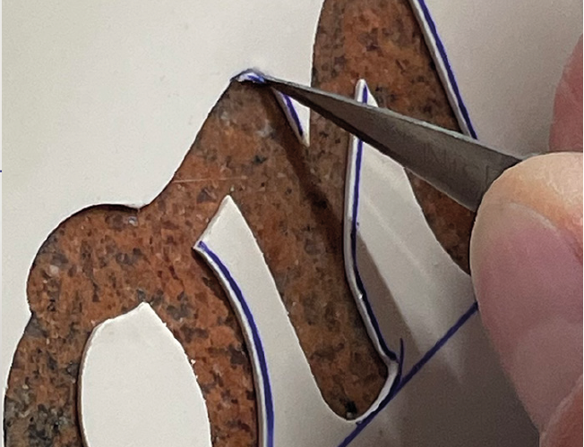 Die Verteifung sollte exakt der Kontur der Intarsie mit 1mm umlaufenden Rand erhalten.