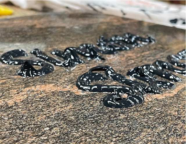 Nach 24 bis 48 Stunden ist der Polymerkleber ausgehörtet. Die Granitplatte mit den Intarsien kann nun abschließend gereinigt und eventuelle Kleberreste entfernt werden.